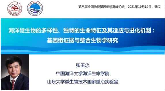 山東大學(xué)張玉忠教授講述了“海洋微生物的多樣性、獨特的生命特征及其適應(yīng)與進(jìn)化機制:基因組分析與整合生物學(xué)研究。”張老師團隊首先從基因組層面,系統(tǒng)揭示了深海、極地海域微生物的多樣性及生物地理分布特征;然后,揭示了深海、極地海域微生物獨特的生命特征及極端環(huán)境適應(yīng)與進(jìn)化的基因組學(xué)證據(jù)。在此基礎(chǔ)上,從微生物生理學(xué)、遺傳學(xué)、生物化學(xué)與結(jié)構(gòu)生物學(xué)等多個層面,系統(tǒng)闡明深海、極地海域微生物獨特的生命特征、環(huán)境適應(yīng)與生態(tài)效應(yīng)的分子機制,為開發(fā)利用深海、極地海域微生物及其基因資源奠定理論基礎(chǔ)。