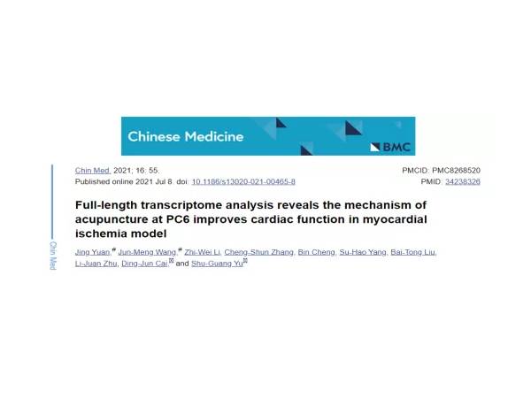 英文題目:Full-length transcriptome analysis reveals the mechanism of acupuncture at PC6 improves cardiac function in myocardial ischemia model