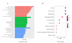 差異AS分析結(jié)果顯示,本研究共鑒定出347個差異AS事件,其中上調(diào)174個,下調(diào)173個。AS上調(diào)事件數(shù)量與AS下調(diào)事件數(shù)量相同。與對照組相比,MI組有129例AS事件差異上調(diào),147例AS事件差異下調(diào)。與MI組相比,PC6組有45個AS事件差異上調(diào),26個AS事件差異下調(diào)。通過GO和KEGG富集分析,作者發(fā)現(xiàn)這些基因富集的前10個通路包括核糖體、HIF-1信號通路、肥厚型心肌病、擴張型心肌病。結(jié)果表明,這些參與差異AS事件的基因與心臟病有關(guān)。