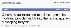 主要內(nèi)容:該研究以藥用作物連翹為研究對(duì)象,通過Nanopore平臺(tái)測(cè)序數(shù)據(jù)組裝了737.47 Mb的高質(zhì)量連翹基因組。并對(duì)15個(gè)連翹自然種群進(jìn)行全基因組比較分析,找到了與本地適應(yīng)相關(guān)的太陽(yáng)輻射、溫度和降雨等變量相關(guān)候選基因。該研究為連翹從野生種群篩選優(yōu)良種質(zhì)資源提供了遺傳資源和理論參考。