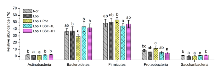 BSH-1是一種從竹屑中提取的O-乙?;揪厶?。該研究測定了BSH-1對洛哌丁胺(Lop)誘導(dǎo)的小鼠便秘的保護(hù)作用。小鼠每日灌胃BSH-1,連續(xù)14天。在便秘小鼠中,BSH-1顯著縮短排便時(shí)間,提高胃腸(GI)通過率、糞便產(chǎn)量和盲腸短鏈脂肪酸(SCFAs)濃度。BSH-1調(diào)節(jié)血清胃腸激素和神經(jīng)遞質(zhì)水平。BSH-1還顯著改變了便秘小鼠的盲腸菌群,增加了潛在有益細(xì)菌(如 Lactobacillus, Roseburia和 Bacteroidales_S24–7)的豐度,減少了潛在致病菌(如Alloprevotella和Staphylococcus)。此外,結(jié)腸轉(zhuǎn)錄組分析表明,BSH-1顯著逆轉(zhuǎn)了便秘小鼠腸道運(yùn)動(dòng)、水和離子轉(zhuǎn)運(yùn)、炎癥和癌癥相關(guān)基因的表達(dá)變化。結(jié)果表明,BSH-1能有效緩解LOP誘導(dǎo)的小鼠便秘,有可能用于便秘的治療。