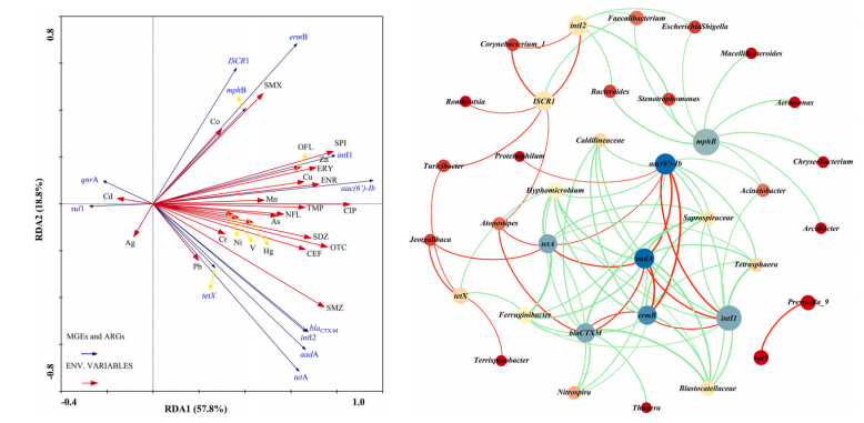 圖2.RDA分析和網絡圖分析