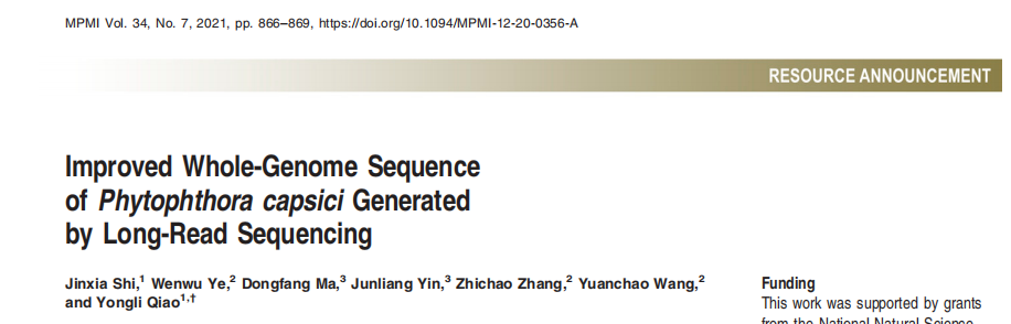 2.Shi J, Ye W, Ma D, et al. Improved whole genome sequence of Phytophthora capsici generated by long-read sequencing[J]. Molecular Plant-Microbe Interactions, 2021 (ja).