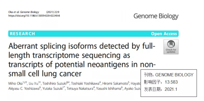 背景:全長(zhǎng)轉(zhuǎn)錄組能夠檢測(cè)癌細(xì)胞中異常剪接異構(gòu)體的結(jié)構(gòu)。這些亞型有時(shí)候被翻譯,被人類白細(xì)胞抗原(HLA)分子呈現(xiàn),并被識(shí)別為新抗原。該研究使用(MinION)構(gòu)建了一個(gè)非小細(xì)胞肺癌中異常剪接的目錄,通過(guò)該目錄可以識(shí)別新亞型和潛在的新抗原。