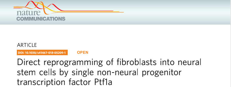 文章標(biāo)題:非神經(jīng)前體細(xì)胞轉(zhuǎn)錄因子Ptf1a可獨(dú)立將成纖維細(xì)胞直接重編程為神經(jīng)干細(xì)胞