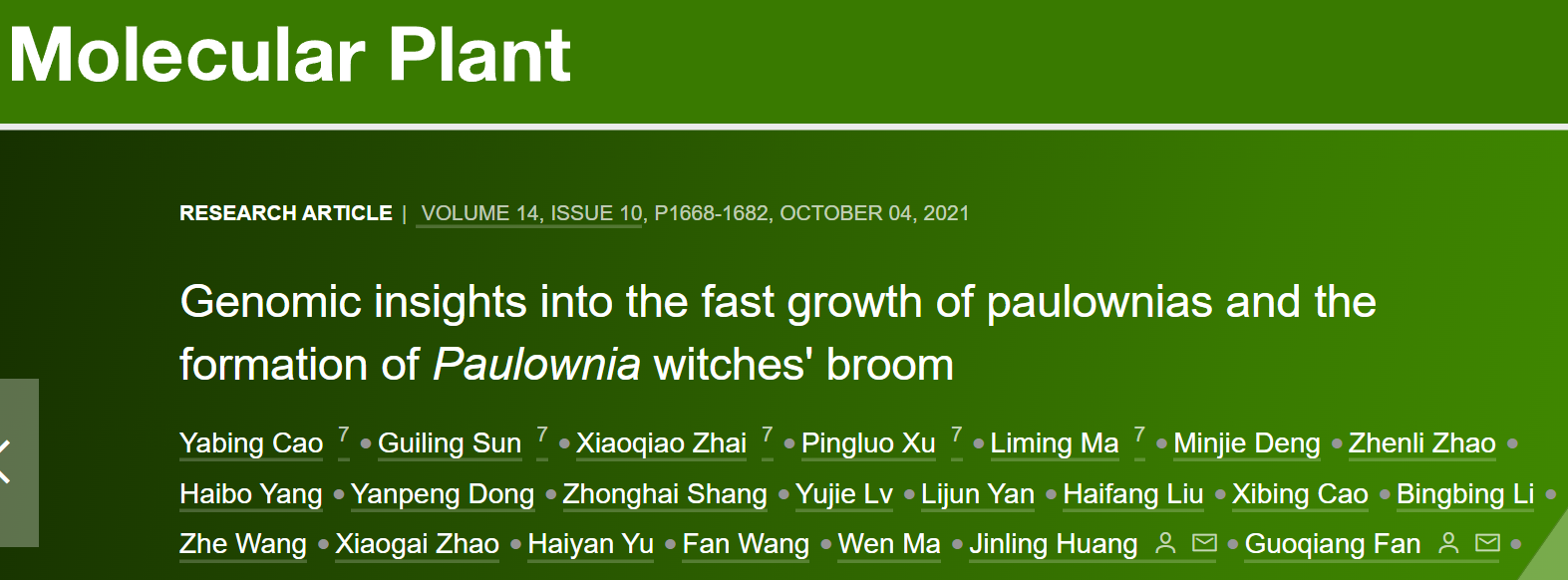 本研究通過PacBio技術(shù)組裝完成511.6 Mb泡桐基因組,contigN50=852.4 Kb;并通過Hi-C技術(shù)將93.2%序列錨定至20條假染色體上,多種評(píng)估結(jié)果表明本次構(gòu)建了高質(zhì)量染色體水平的白花泡桐基因組。研究進(jìn)一步基于白花泡桐及其叢枝植原體基因組測序和進(jìn)化分析,揭示了C3光合作用與景天酸代謝相結(jié)合提高光合效率的方式,是白花泡桐快速生長的關(guān)鍵因素。并通過WGCNA、轉(zhuǎn)基因、酵母雙雜交、雙分子熒光互補(bǔ)和免疫共沉淀等方式,闡明了泡桐叢枝植原體效應(yīng)因子PaWB-SAP54介導(dǎo)的PfSPLa泛素化引起了泡桐叢枝病的形成。該研究為加速泡桐的分子育種、品種改良及進(jìn)一步闡明泡桐叢枝病發(fā)生分子機(jī)制奠定了堅(jiān)實(shí)基礎(chǔ)。