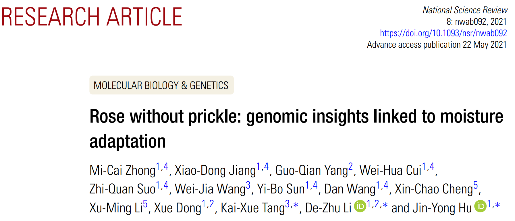 以中國古老月季‘無刺光葉薔薇’(R. wichuraiana‘Basye’s Thornless’,BT)和‘月月粉’(R. chinensis‘Old Blush’,OB)及其雜交F1和回交BC1F1世代遺傳群體等為試材,團(tuán)隊(duì)構(gòu)建了二倍體BT染色體水平高量參考基因組。該基因組大小約為530.6 Mb;遺傳圖比對(duì)、BUSCO分析、二代reads回貼、與單倍體OB基因組比較、單堿基水平正確率分析和LTR組裝指數(shù)(LAI=20.03)等方法均確認(rèn)了BT基因組的高準(zhǔn)確性。綜合利用比較基因組學(xué)、分子遺傳學(xué)和演化生物學(xué)等方法手段解析了月季皮刺遺傳調(diào)控機(jī)制,系統(tǒng)研究了無刺BT和有刺OB間的重要遺傳分化,探究了月季皮刺遺傳調(diào)控機(jī)制,揭示了基因表達(dá)變異可能是皮刺表型分化的基礎(chǔ),提出了皮刺發(fā)育早期的生理學(xué)功能假設(shè),構(gòu)建了重要遺傳和基因組資源。