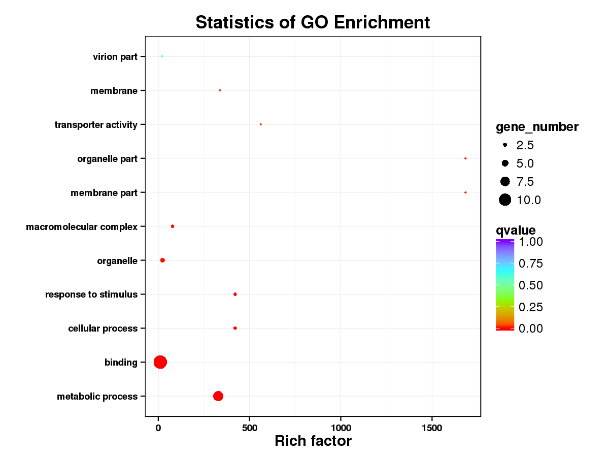 對(duì)于每個(gè)差異分組的4種(同上)變化趨勢(shì)中的基因和蛋白分別進(jìn)行GO功能顯著性富集分析,作GO富集氣泡圖。通過(guò)GO富集分析可以得到與關(guān)聯(lián)到的蛋白質(zhì)背景相比,差異蛋白質(zhì)中顯著富集的GO功能條目,從而得出差異蛋白質(zhì)與哪些生物學(xué)功能顯著相關(guān),確定差異蛋白行使的主要生物學(xué)功能。