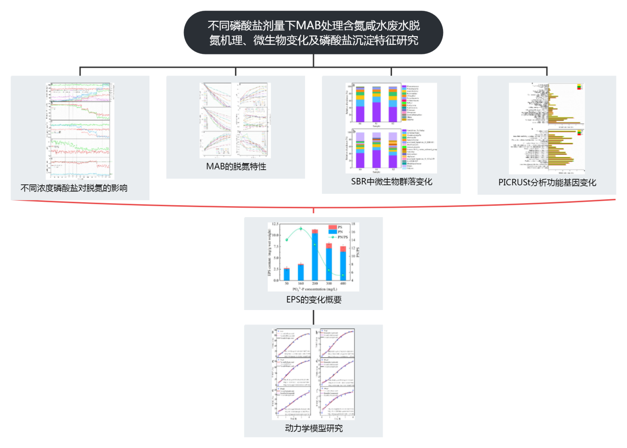 2021年4月,青島大學(xué)在《Bioresource Technology》發(fā)表題為“Deciphering nitrogen removal mechanism through marine anammox bacteria treating nitrogen-laden saline wastewater under various phosphate doses: Microbial community shift and phosphate crystal”的研究論文,該論文主要研究了(1)不同磷酸鹽劑量下MAB(marine anammox bacteria,海洋厭氧菌)的脫氮機(jī)制;(2)微生物群落變化;(3)磷酸鹽沉淀的組成和特征。
