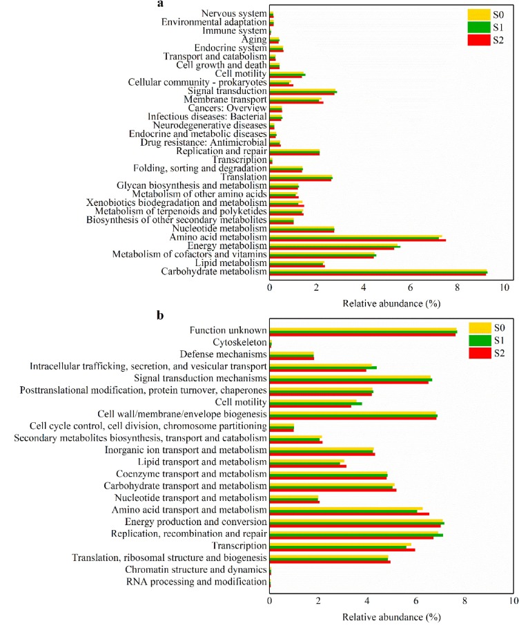 圖5.基于(a) KEGG和(b) COG 數(shù)據(jù)庫(kù)的PICRUSt分析