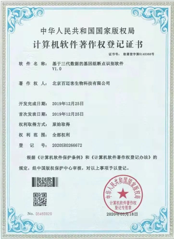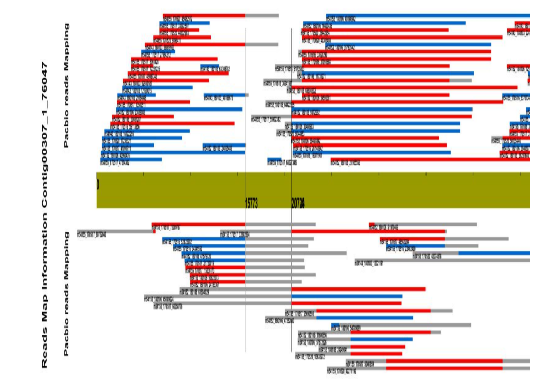 百邁客專利技術(shù)《基于三代數(shù)據(jù)的基因組斷點識別技術(shù)》能結(jié)合三代測序數(shù)據(jù)快速方便的判斷基因組序列的組裝錯誤,提升基因組序列z確性,為生物學研究奠定重要的基因組基礎(chǔ)。該專利技術(shù)不僅可以判斷基因組上連接錯誤的地方(即斷點),同時可以對錯誤區(qū)域的結(jié)果進行作圖,給予研究者直觀的結(jié)果展示,從而方便研究者對基因組序列進行進一步改善,為基因組數(shù)據(jù)分析提供一個有力的工具。