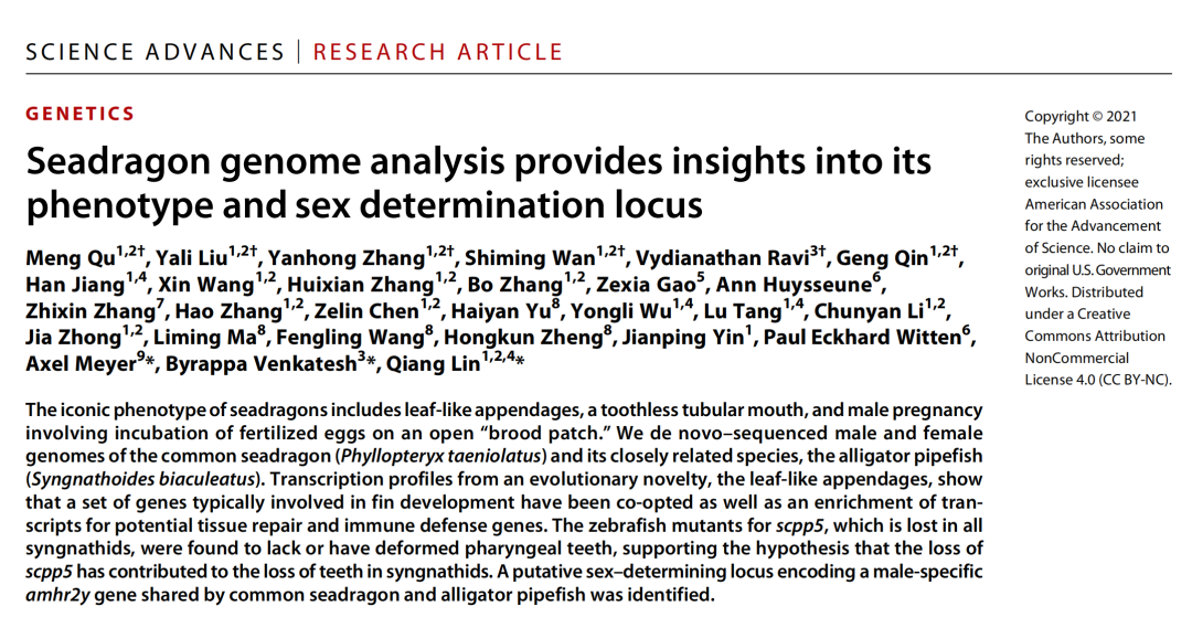 而該項技術(shù)也已在多項合作案例中成功引用,如2021年中國科學院昆明植物研究所關(guān)于無刺光葉薔薇(月季)基因組學研究成果發(fā)表在國際期刊National?Science?Review(IF:17.275),探究了月季皮刺遺傳調(diào)控機制,為更好理解植物新性狀產(chǎn)生與維持機制提供了新視角;如2021年中國科學院南海海洋研究所關(guān)于草海龍基因組學研究成果發(fā)表在國際期刊Science?Advances(IF:14.136),揭示了海龍科物種性別決定基因的產(chǎn)生和演化歷程,為海洋魚類的環(huán)境適應(yīng)性進化研究提供了重要理論依據(jù)。