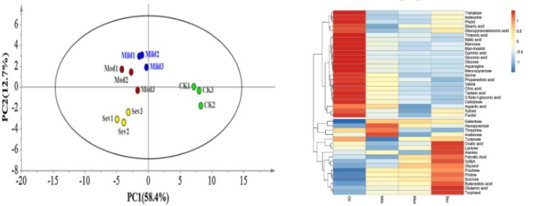 實(shí)驗(yàn)方法:初級代謝物分析采用GC-MS的方法測定初級代謝物;次級代謝物分析:LC-QTOF-MS法;木質(zhì)素總含量測定:280nm吸光度法;木質(zhì)素形態(tài)和分布的組織化學(xué)分析:顯微鏡成像;RNA測序:Illumina HiSeq2500。