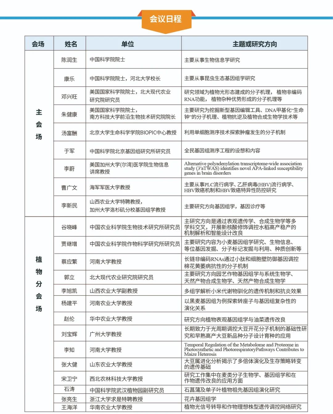 隨著基因組組裝(GA)、種質(zhì)資源鑒定(GC)、基因功能鑒定(GI)、基因組育種(GB)、基因編輯(GE)的5G育種策略快速發(fā)展,以高通量測序技術(shù)為基礎(chǔ)的組學(xué)研究已經(jīng)廣泛應(yīng)用于植物研究的各個(gè)領(lǐng)域。本次大會特邀植物功能基因組學(xué)、系統(tǒng)與進(jìn)化植物學(xué)、表觀遺傳學(xué)等熱點(diǎn)領(lǐng)域?qū)<引R聚一堂,分享植物研究的前沿技術(shù)、經(jīng)驗(yàn)成果及發(fā)展前景。