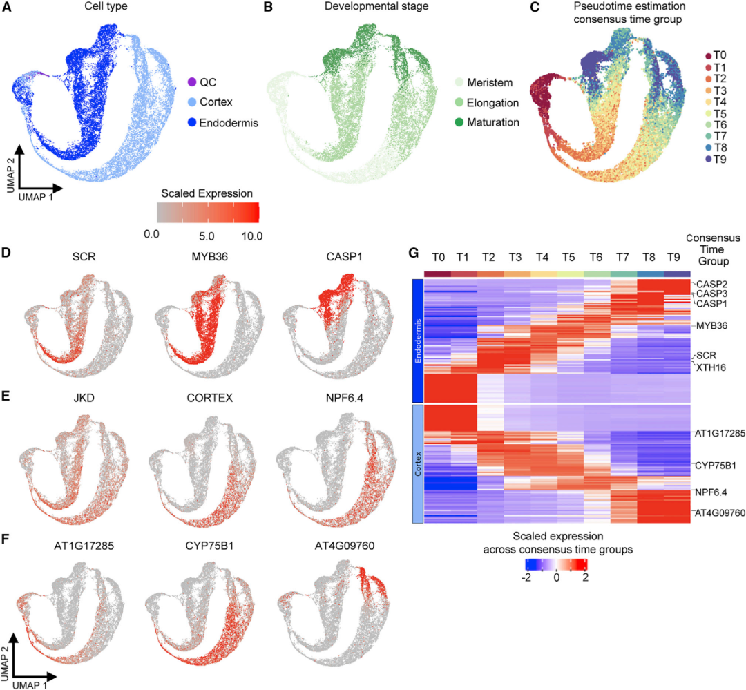 Shahan R, Hsu CW, Nolan TM, et al. A single-cell Arabidopsis?root atlas reveals developmental trajectories in wild-type and cell identity mutants.?Dev Cell. 2022 Feb 28;57(4):543-560.e9.