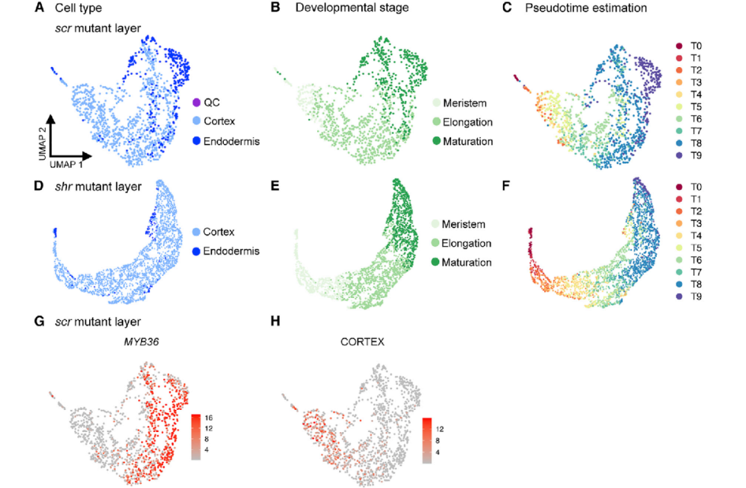 圖5 圖譜揭示了shr和scr突變體的細胞類型豐度和特性變化