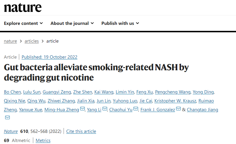 Chen, B., Sun, L., Zeng, G. et al. Gut bacteria alleviate smoking-related NASH by degrading gut nicotine. Nature 610, 562–568 (2022). https://doi.org/10.1038/s41586-022-05299-4