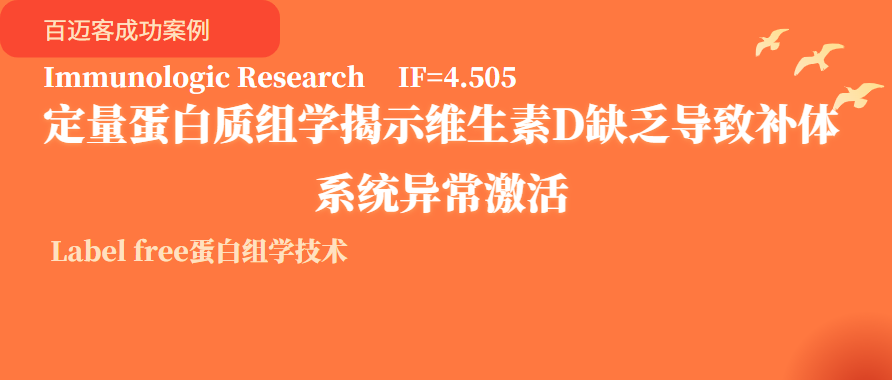2022年9月30日,銀川市第一人民醫(yī)院謝曉敏教授團隊在《Immunologic Research》發(fā)表題為“Vitamin D deficiency leads to the abnormal activation of the complement system”的研究論文,該研究運用Laber free蛋白質(zhì)組學(xué)技術(shù)在疾病研究中的應(yīng)用,分析了不同維生素D水平下補體系統(tǒng)蛋白質(zhì)表達的變化,發(fā)現(xiàn)了維生素D缺乏不僅會導(dǎo)致胰島素抵抗和糖代謝紊亂,還會導(dǎo)致蛋白質(zhì)表達異常,從而導(dǎo)致補體系統(tǒng)的異常激活。為進一步研究維生素D與免疫系統(tǒng)的關(guān)系提供了新的理論基礎(chǔ)。百邁客生物為該研究提供了蛋白組檢測服務(wù)與部分分析工作。
