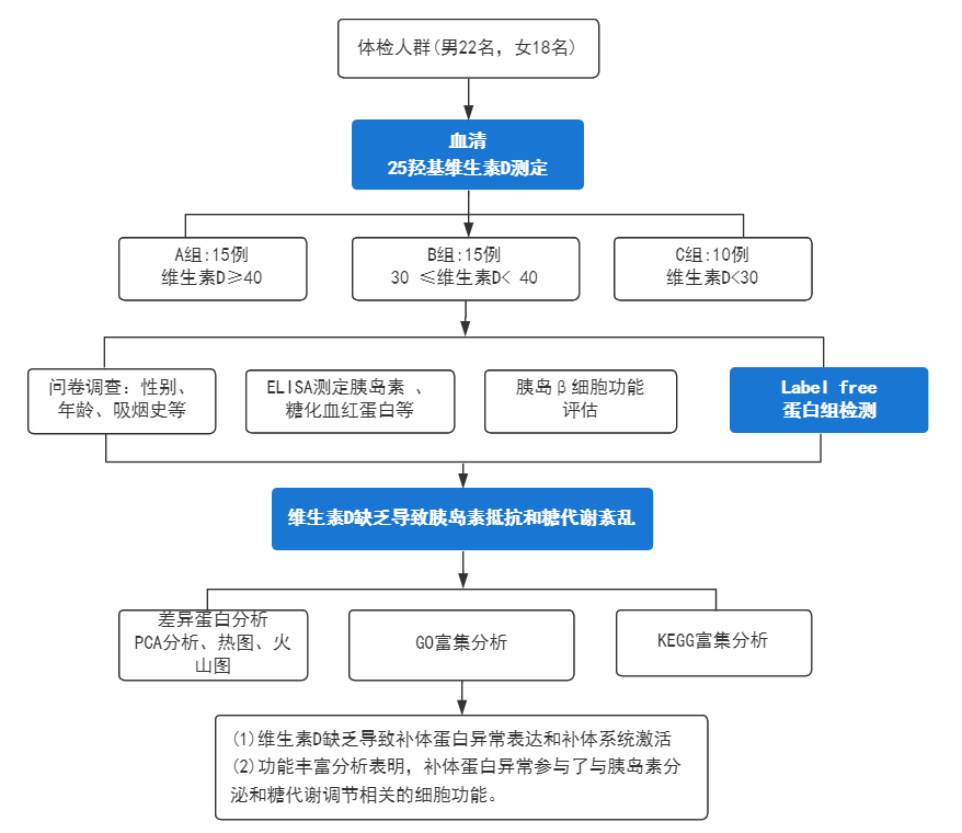 在該研究中,作者應(yīng)用高通量非靶向蛋白質(zhì)組學(xué)技術(shù),根據(jù)維生素D水平,對不同空腹血糖狀態(tài)下的體檢人群進行分組,探討維生素D缺乏對人體補體系統(tǒng)激活的可能機制。為蛋白質(zhì)組學(xué)在疾病研究中的應(yīng)用提供了一個很好的案例。