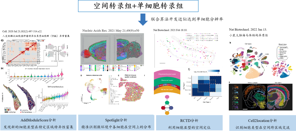 基因表達(dá)具有時(shí)間和空間特異性,單細(xì)胞轉(zhuǎn)錄組主要從時(shí)間上研究基因表達(dá),能夠系統(tǒng)的識(shí)別組織中的細(xì)胞亞群,但沒有捕獲其空間組織信息,限制了我們對組織及細(xì)胞間相互作用的理解。而空間轉(zhuǎn)錄組的應(yīng)用使得人們能夠從空間的角度解析數(shù)據(jù),在空間上研究基因的表達(dá)。通過整合兩種數(shù)據(jù)模式,將單細(xì)胞轉(zhuǎn)錄組數(shù)據(jù)和空間轉(zhuǎn)錄組數(shù)據(jù)進(jìn)行聯(lián)合分析,在時(shí)空上分析基因的表達(dá)具有重要的意義。