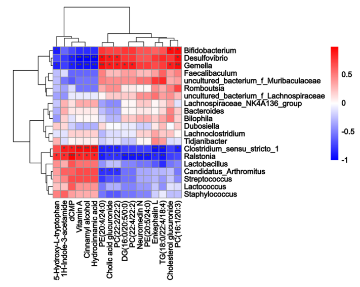 圖4. 小腸微生物群與代謝物的 Spearman 相關(guān)性分析