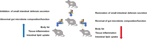 一句話總結(jié):EA通過促進(jìn)腸道防御素、拯救失調(diào)的盲腸微生物菌群,以協(xié)同模式減少脂質(zhì)吸收來發(fā)揮抵抗肥胖作用。