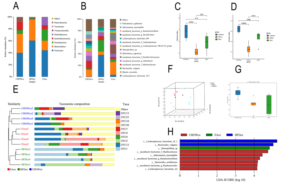 圖4 EA干預(yù)恢復(fù)了HFD喂養(yǎng)小鼠的腸道微生物群
