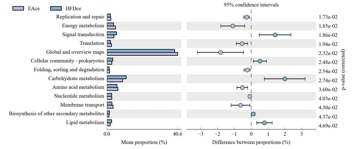 圖5 HFD組和EA組功能基因組成的功能預(yù)測