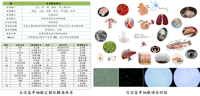 高質(zhì)量的細(xì)胞懸液意味著真實(shí)且可重復(fù)的單細(xì)胞測序數(shù)據(jù),因此細(xì)胞懸液制備對(duì)單細(xì)胞測序至關(guān)重要。由于不同細(xì)胞類型特性不同,需要根據(jù)不同樣本類型和研究目的選擇針對(duì)性的樣本制備方案。百邁客基于豐富的項(xiàng)目經(jīng)驗(yàn),在標(biāo)準(zhǔn)SOP的基礎(chǔ)上不斷優(yōu)化調(diào)整,量身定制專屬實(shí)驗(yàn)方案,目前已累計(jì)成功制備250+種組織樣本類型,完成單細(xì)胞建庫樣本7000+例,單細(xì)胞懸液成功率高達(dá)98%。