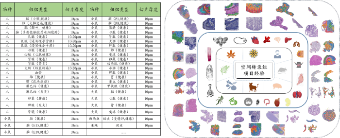 空間轉(zhuǎn)錄組從組織切片、染色到組織透化的實(shí)驗(yàn)過程,也直接關(guān)系到分析數(shù)據(jù)的質(zhì)量,百邁客實(shí)驗(yàn)人員經(jīng)過大量的項(xiàng)目積累,創(chuàng)建了動(dòng)植物組織優(yōu)化標(biāo)準(zhǔn)體系,保證組織優(yōu)化結(jié)果準(zhǔn)確判讀,可提供高質(zhì)量的報(bào)告數(shù)據(jù),目前實(shí)測組織類型100+種,包括人、小鼠、大鼠、果蠅、牛等物種的腫瘤樣本、胚胎樣本、肝臟樣本、肺部樣本、腦部樣本等組織類型,尤其是突破了動(dòng)物血管、軟骨、皮膚類組織的切片、透化難點(diǎn),為高質(zhì)量數(shù)據(jù)分析提供了保障。
