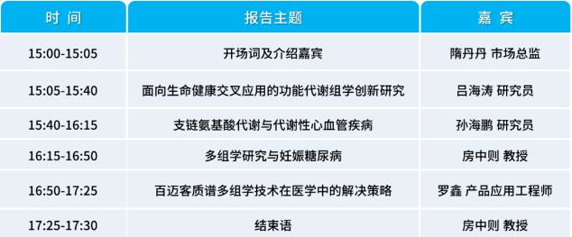 2023年3月22日中國(guó)生物物理學(xué)會(huì)腸道菌群分會(huì)房中則副秘書長(zhǎng)牽頭與百邁客生物聯(lián)合舉辦“?質(zhì)譜技術(shù)與多組學(xué)前沿應(yīng)用線上研討會(huì)”。本次研討會(huì)由百邁客醫(yī)學(xué)市場(chǎng)總監(jiān)隋丹丹主持,邀請(qǐng)了上海交通大學(xué)系統(tǒng)生物醫(yī)學(xué)研究院呂海濤研究員,天津醫(yī)科大學(xué)孫海鵬研究員,天津醫(yī)科大學(xué)房中則教授,共同探討質(zhì)譜多組學(xué)技術(shù)在疾病研究中應(yīng)用。