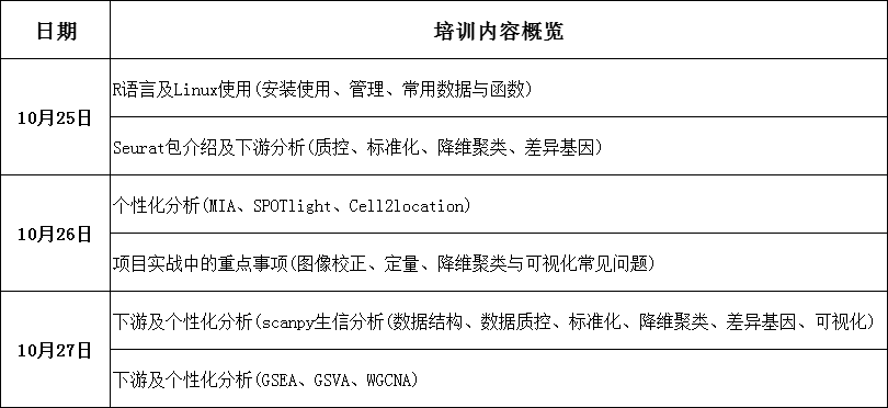 空間轉(zhuǎn)錄組技術(shù)是當(dāng)前生命科學(xué)領(lǐng)域熱門的技術(shù)之一,因其同時(shí)保留轉(zhuǎn)錄組信息和空間位置信息的能力而備受熱捧,現(xiàn)在學(xué)習(xí)空間轉(zhuǎn)錄組分析技術(shù)正當(dāng)其時(shí)。本次課程包括了基本的R語(yǔ)言基礎(chǔ)培訓(xùn),以及空間轉(zhuǎn)錄組的基本分析,詳細(xì)的解析Seurat包的使用,并進(jìn)一步講解大量的個(gè)性化高級(jí)分析:BayesSpace,SPOTlight,cell2location,RCTD等,重要的分析全部都進(jìn)行一遍課堂實(shí)操,理論與實(shí)踐相結(jié)合,把空間轉(zhuǎn)錄組分析技術(shù)帶回家。