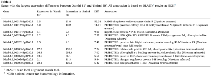 1.2. “ Xanthi 81”和“ Smirni 3B”中的差異表達(dá)(FPKM> 1)基因