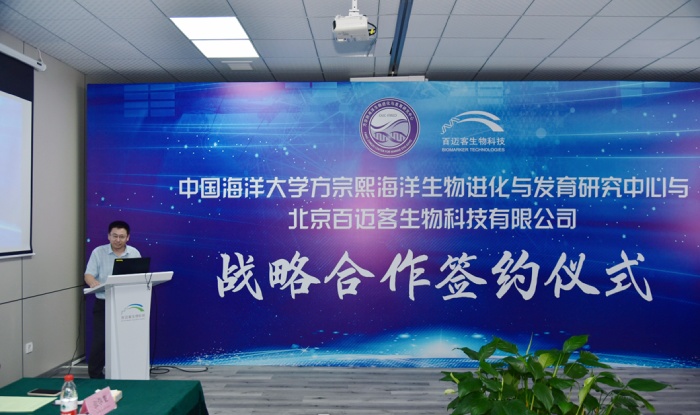 隨后由中國海洋大學(xué)董波教授發(fā)表致辭,董波教授介紹了中國海洋大學(xué)方宗熙海洋生物進(jìn)化與發(fā)育研究中心近年海洋模式動物研究進(jìn)展及重點(diǎn)科研攻關(guān)成果,同時表示:期望依托雙方的優(yōu)質(zhì)資源和創(chuàng)新性的技術(shù)經(jīng)驗(yàn)實(shí)現(xiàn)價值共享,并通過持續(xù)的加強(qiáng)交流合作、協(xié)同發(fā)展。