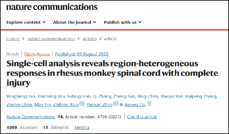 單細胞技術(shù)解析靈長類脊髓損傷修復(fù)機制