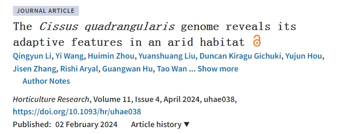 文章標題:The?Cissus quadrangularis?genome reveals its adaptive features in an arid habitat