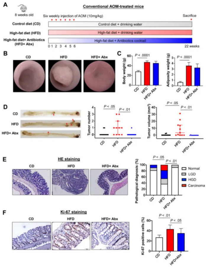 圖1-在AOM模型中,HFD促進(jìn)了依賴于腸道微生物群的結(jié)直腸癌的發(fā)展