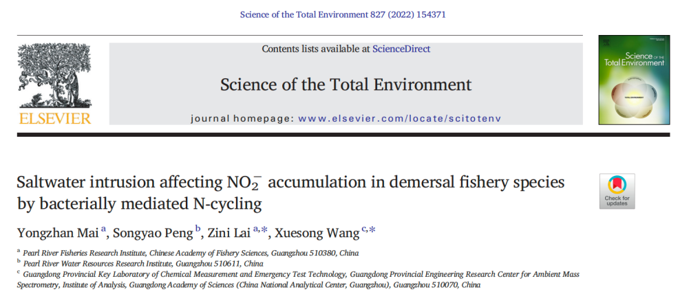 英文名稱Saltwater intrusion affecting NO2? accumulation in demersal fishery species by bacterially mediated N-cycling