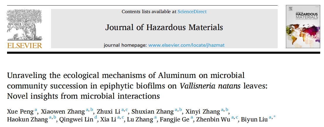 英文標題:?Unraveling the ecological mechanisms of Aluminum on microbial community succession in epiphytic biofilms on?Vallisneria natans?leaves: Novel insights from microbial interactions