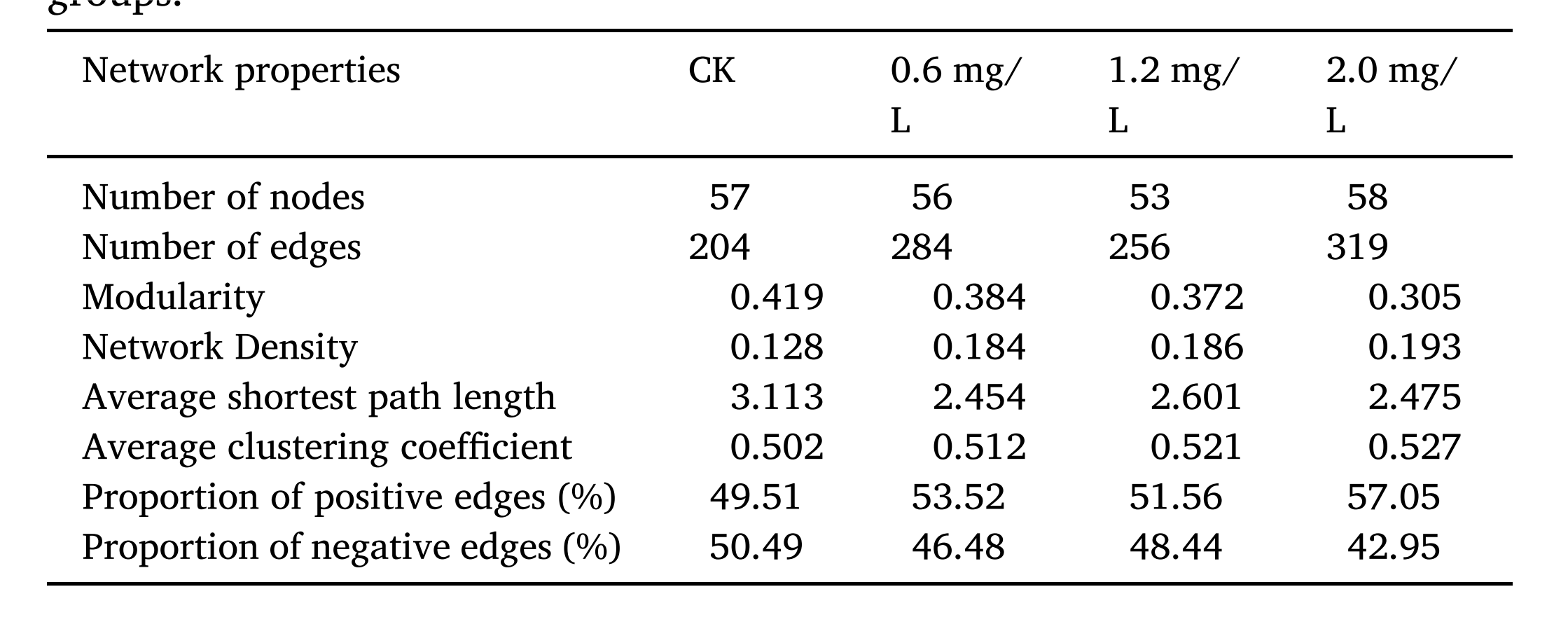 表1-不同處理組的微生物群落網(wǎng)絡的基本性質