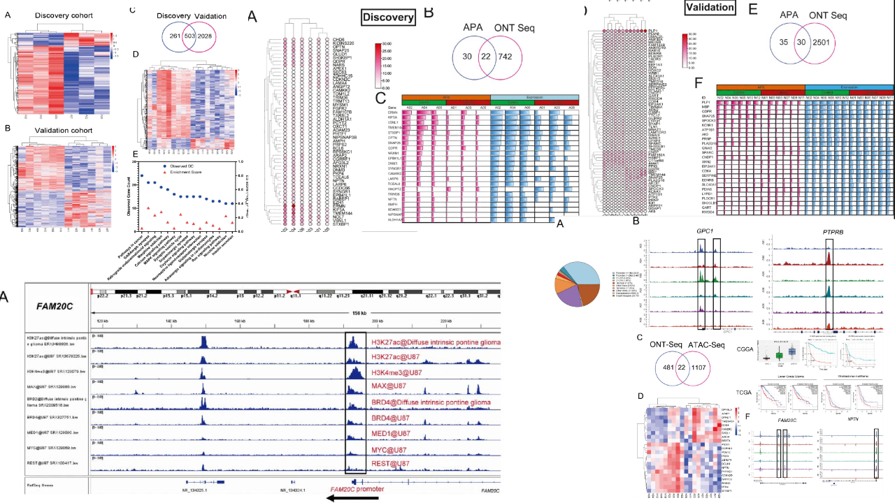 神經(jīng)膠質(zhì)瘤是神經(jīng)系統(tǒng)中最常見的原發(fā)性腫瘤,攻擊力極強,約占所有腦腫瘤的80%,目前主要的癌癥治療方案,包括手術(shù)切除、放療和化療,都會導致預(yù)后不良和高死亡率,很難對膠質(zhì)瘤提供理想的治療效果,因此現(xiàn)在迫切需要探索新的有效策略以及膠質(zhì)瘤治療的潛在治療靶點。長讀長RNA測序技術(shù)已應(yīng)用在包括肝細胞癌和非小細胞肺癌等多種癌癥類型中,ATAC-seq也已經(jīng)應(yīng)用于胰腺癌、胃癌和乳腺癌等多種腫瘤研究中。FAM20C是一種可調(diào)節(jié)分泌途徑中的各種網(wǎng)絡(luò)的分泌蛋白,主要負責礦化激酶,然而越來越多的研究表明,FAM20C?與包括包括乳腺癌、膀胱癌和結(jié)直腸癌在內(nèi)的多種癌癥廣泛相關(guān)。