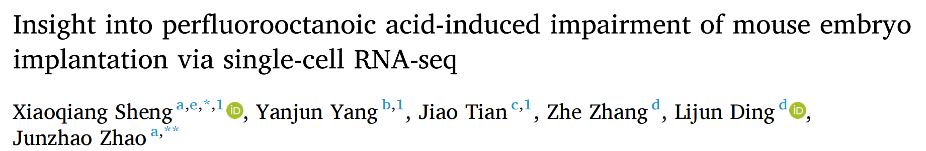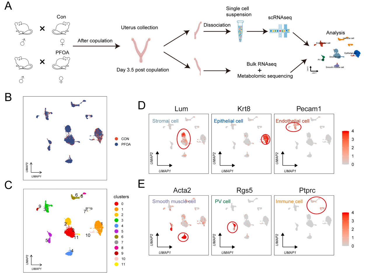 中文題目:單細胞RNA測序研究全氟辛酸誘導的小鼠胚胎著床損傷