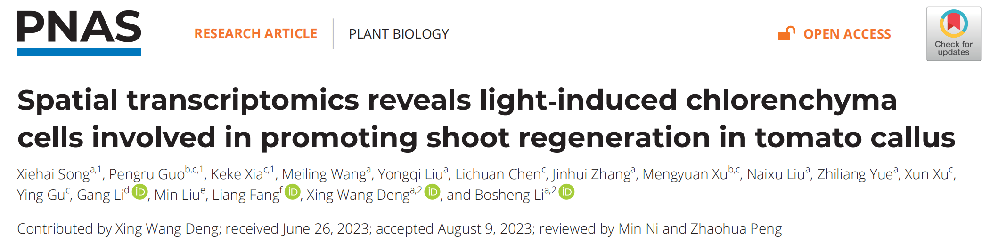 中文題目:空間轉(zhuǎn)錄組測序揭示番茄愈傷組織芽再生的分子機制