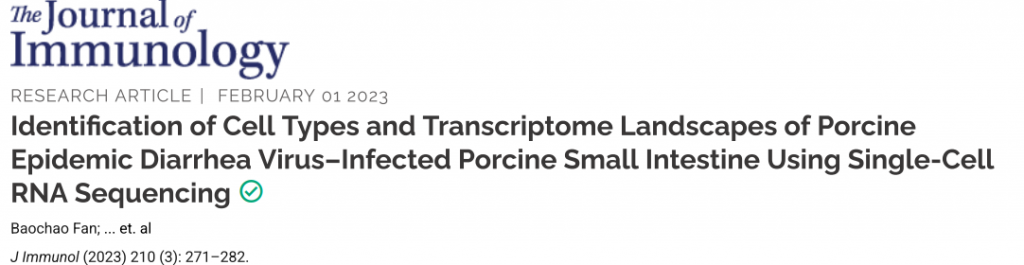 8. Fan B, et al. Identification of Cell Types and Transcriptome Landscapes of Porcine Epidemic Diarrhea Virus-Infected Porcine Small Intestine Using Single-Cell RNA Sequencing. J Immunol. 2023 Feb 1;210(3):271-282.