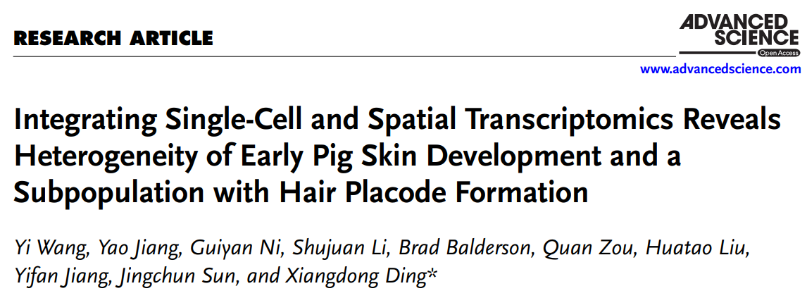 4. Wang Y, et al. Integrating Single-Cell and Spatial Transcriptomics Reveals Heterogeneity of Early Pig Skin Development and a Subpopulation with Hair Placode Formation. Adv Sci (Weinh). 2024 May;11(20):e2306703.