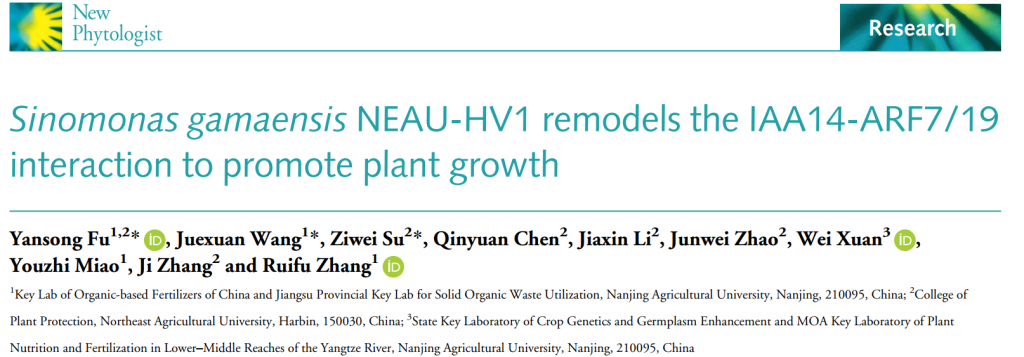 中文標(biāo)題:《Sinnomaras gamaensis NEAU-HV1通過重塑IAA14-ARF7/19互作促進(jìn)植物生長》