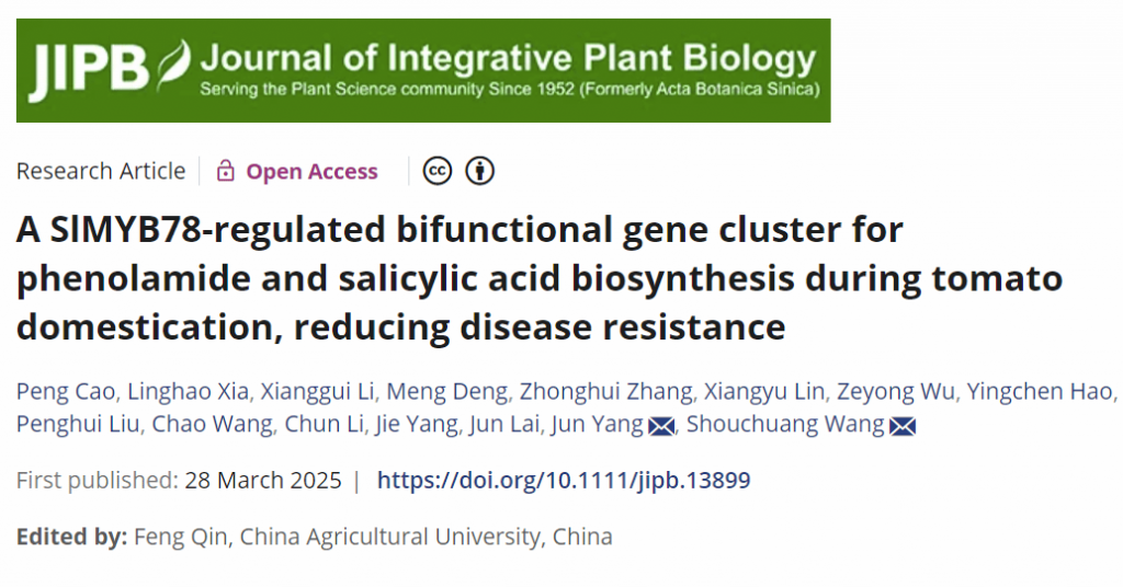 近日,《Journal of Integrative Plant Biology》在線發(fā)表了海南大學(xué)南繁學(xué)院王守創(chuàng)教授團(tuán)隊(duì)題為“A SlMYB78-regulated bifunctional gene cluster for phenolamide and salicylic acid biosynthesis during tomato domestication, reducing disease resistance”的研究論文。首次揭示植物抗病代謝通路中存在雙功能基因簇(BGC2),其核心基因 SlEPS1在馴化中因負(fù)選擇導(dǎo)致功能衰退的分子機(jī)制:其編碼的雙功能酶兼具催化抗菌物質(zhì)酚胺與免疫激素水楊酸的雙重功能,為植物代謝與抗病研究提供新路徑。