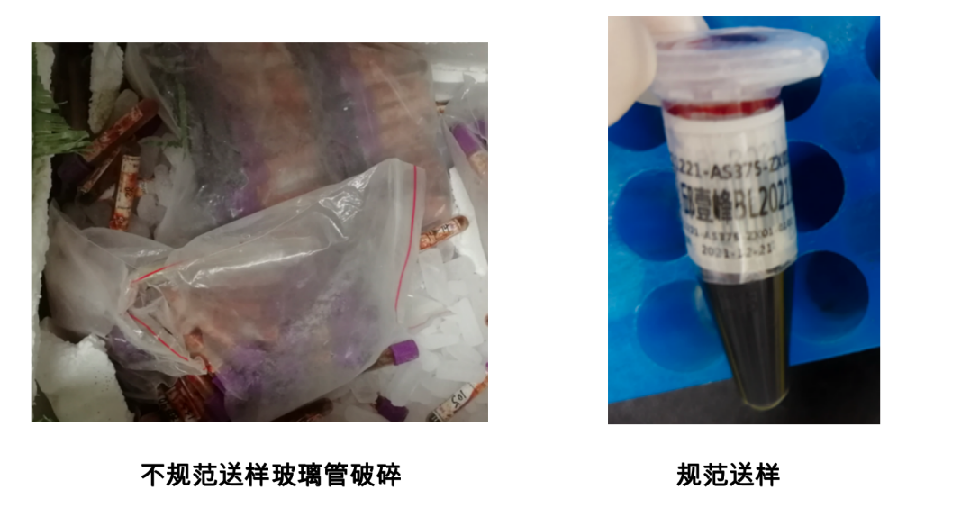 2)組織送樣量:建議送樣量適用于 95%的物種組織,少部分組織因胞內(nèi)核酸量較低,需適當增加送樣量,比如動物皮膚、毛發(fā)等。請嚴格按照上方組織送樣量要求送樣,送樣量過少或過多均不利于提取實驗。采樣量較少會導致提取的核酸總量、濃度不合格,采樣量過多反而會造成速凍不徹底、提取取樣困難、凍融降解等危險