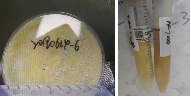 5)以下為不規(guī)范送樣圖片:菌體平板(左圖),菌液送樣(右圖)