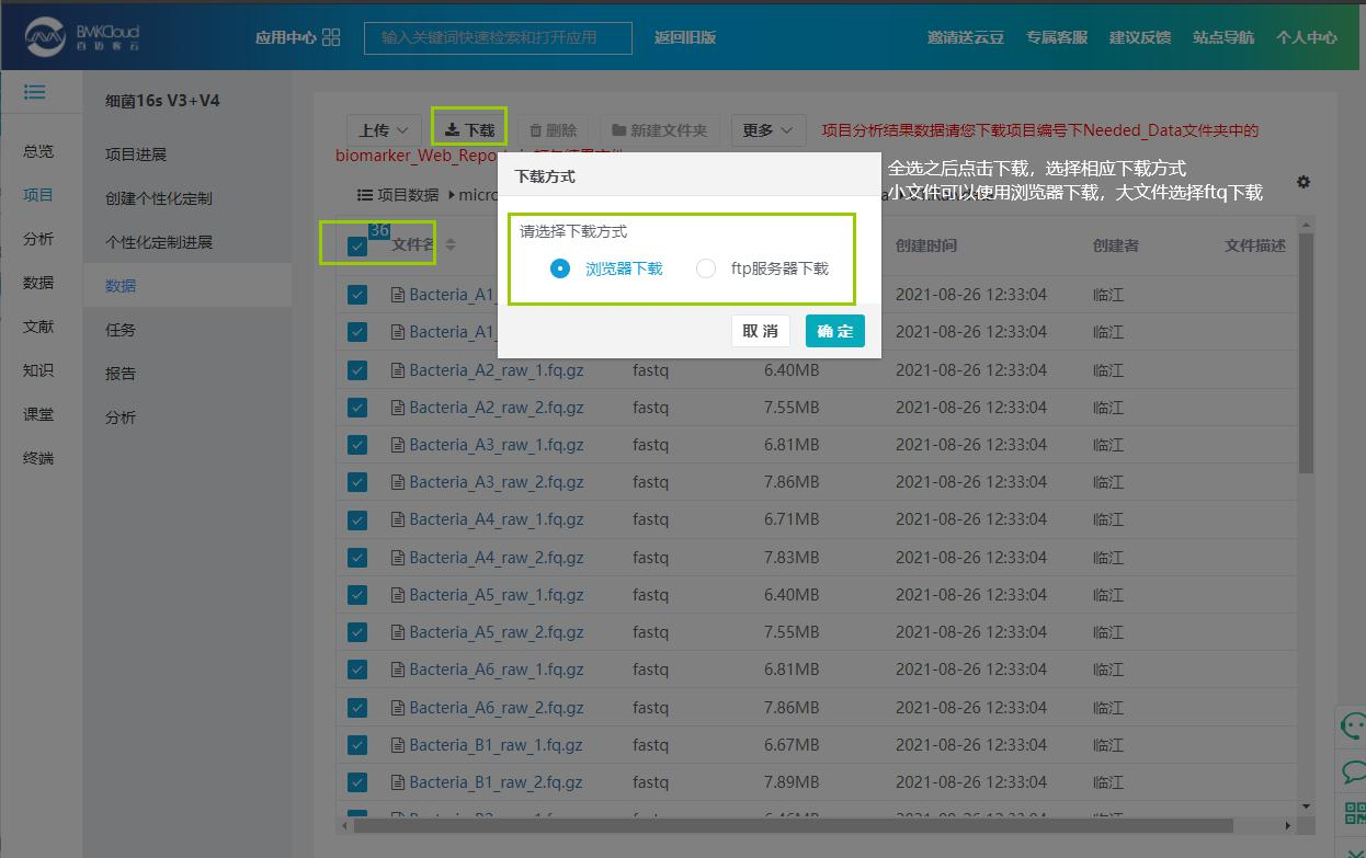 結(jié)果數(shù)據(jù)較小的直接使用瀏覽器下載,較大的需要使用 ftp 下載,具體的 ftp下載指導(dǎo)在后續(xù)詳細(xì)介紹。